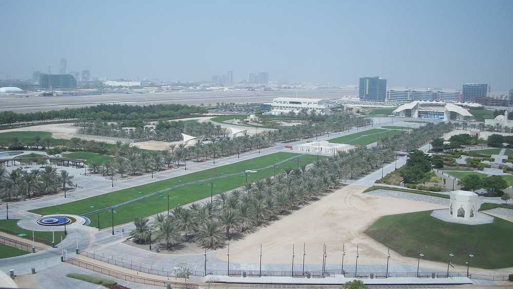 These are photos we took from our hotel room at the Park Rotana. There are also pictures of the park that was right next to the hotel. The park was equipped with an aquarium, go-cart course and numerous fountains.