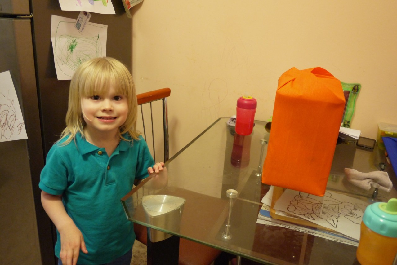 4 year old Felix is here! He also decided on a giant chocolate chip cookie for his birthday treat. He managed to get all his candles blown out this year. I introduced the unbirthday present this year. It gave both the kids something to do. There were a lot of presents in April.